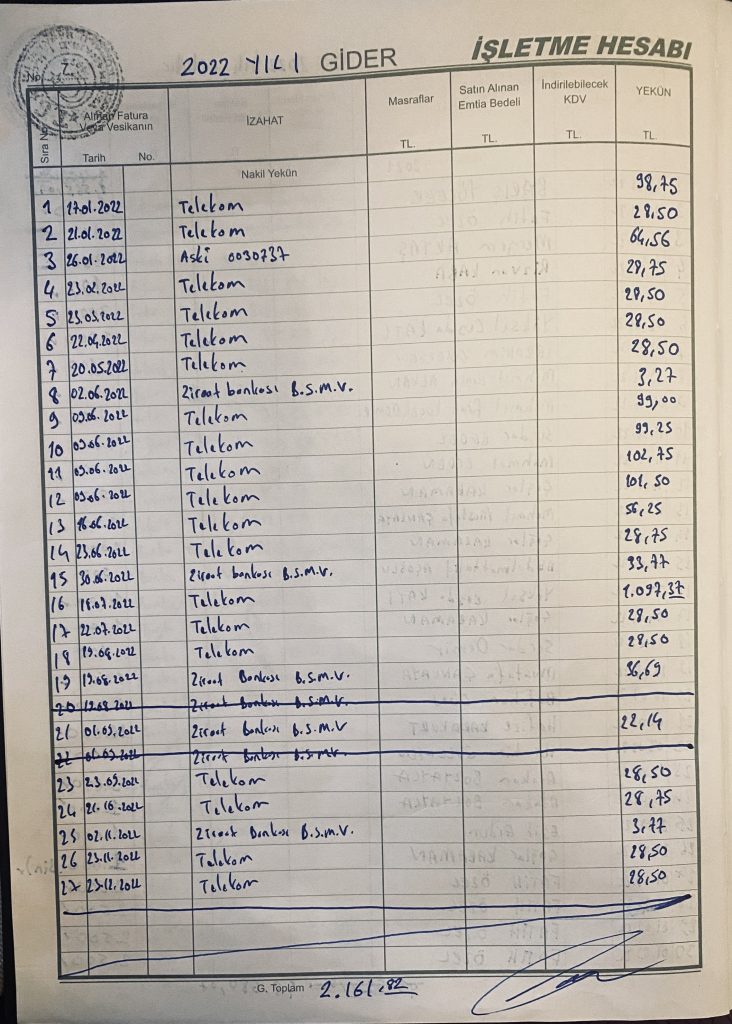 Cumhuriyet ve İstiklal Partisi 2022 Yılında yapmış olduğu Giderler “İşletme Defterine” Gider kısmına kaydedilmiştir.